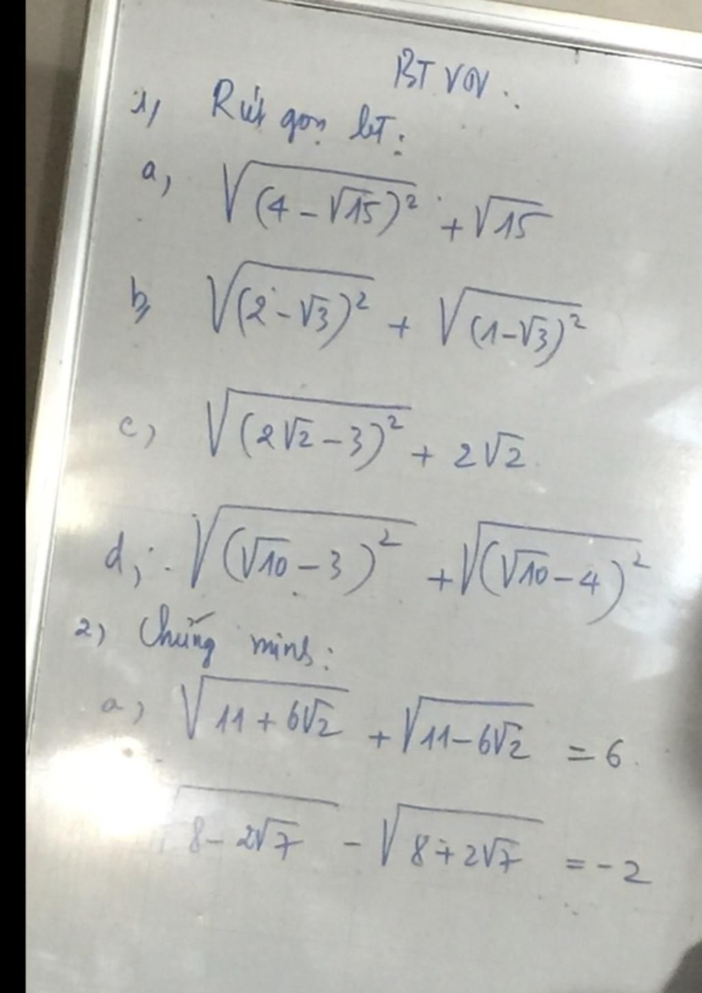 `b,\sqrt{(2 - \sqrt{3})^2} + \sqrt{(1- \sqrt{3})^2}`