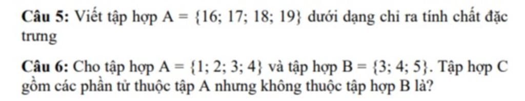 Tập hợp `C` gồm các phần tử thuộc `A` nhưng không thuộc tập hợp `B`