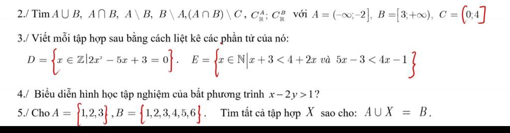 2./ Tìm AU B, An B, A\B, B\A,(AnB)\C,C\;Cả với A=(-c;-2], B=[3;+oo), C =