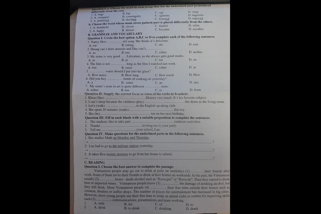 b. Choose the word whose main stress pattern part is placed differently f ...