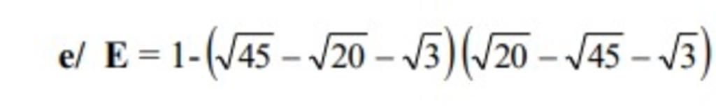 `E=1-(\sqrt{45}-\sqrt{20}-\sqrt{3})(\sqrt{20}-\sqrt{45}-\sqrt{3})`