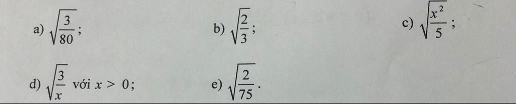 `a) sqrt(3/(80)) = sqrt(3/(2^4 . 5)) = 1/4sqrt(3/5)`