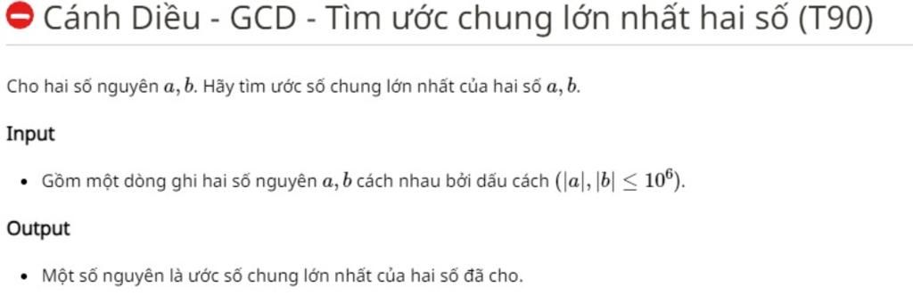 – Cánh Diều - GCD - Tìm ước chung lớn nhất hai số (T90)
