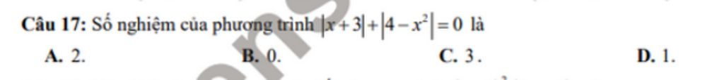 `=>` `|x+3|+|4-x^2|=0` `<=>` `{(x+3=0),(4-x^2=0):}`