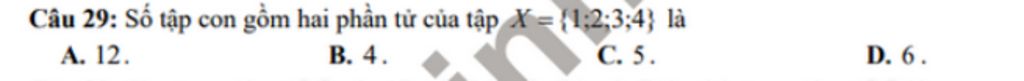 Áp dụng vào bài toán, suy ra số tập gồm hai phần tử của `X` là: `C_4^2=6`