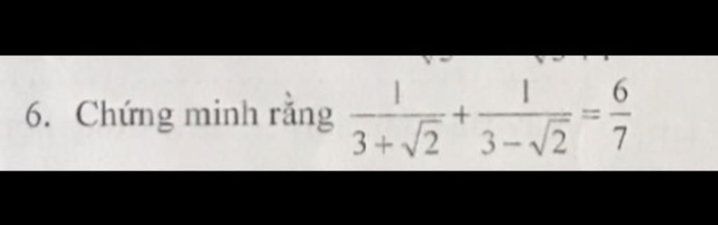 Xét `VT=1/(3+\sqrt{2})+1/(3-\sqrt{2})`