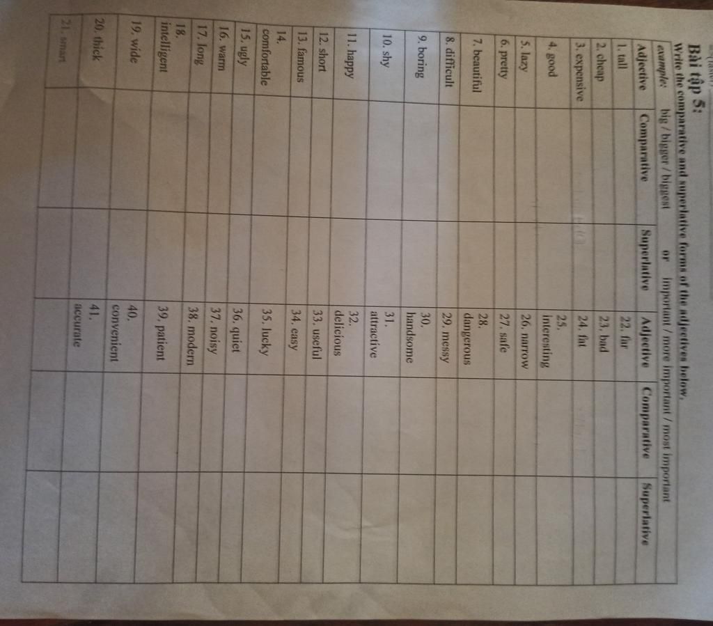 - Tận cùng là y → đổi -y thành - i và thêm ER / EST