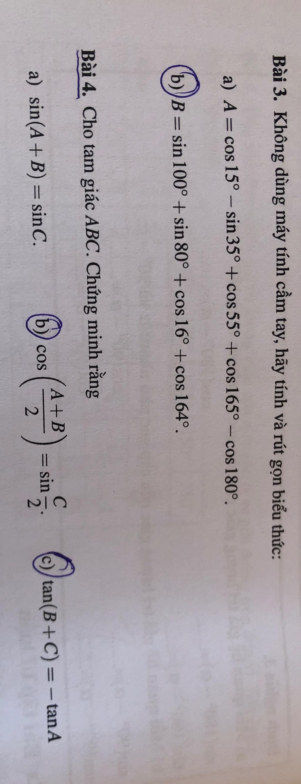 b)B= sin 100° + sin 80° +cos 16° + cos 164°.