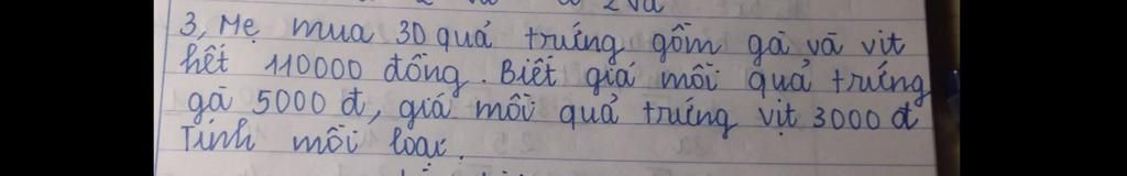 $\text{Vậy Mẹ đã mua 10 quả trứng gà và 20 quả trứng vịt}$