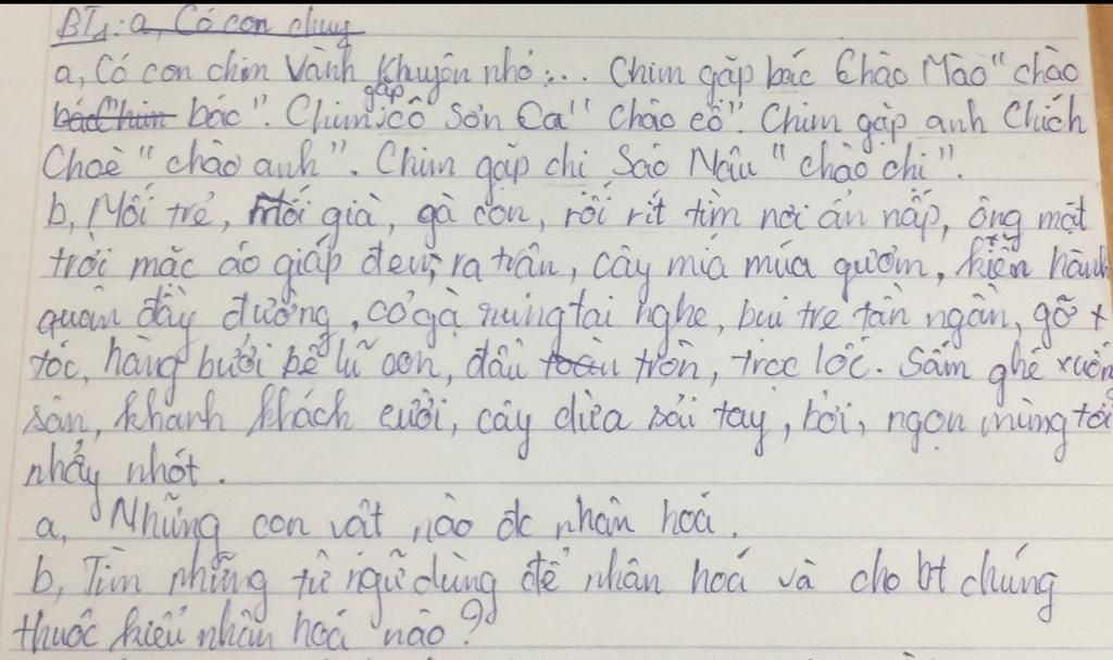`1.` Những con vật được nhân hóa : Vành Khuyên, Chào Mào, Sơn Ca, Chích Chòe, Sáo Nâu