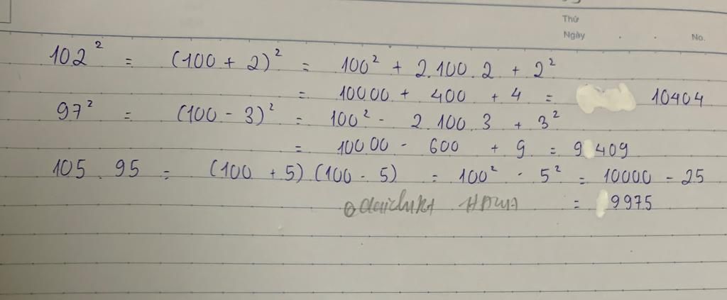 `102^2 = (100+2)^2 = 100^2 + 2.100.2 + 2^2 = 10 000+400 + 4 = 10404`