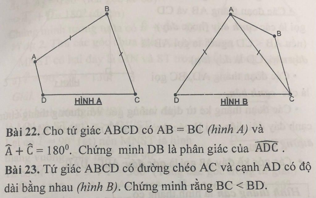 22) Vẽ $BE⊥DA; BF⊥DC$ (như hình A)