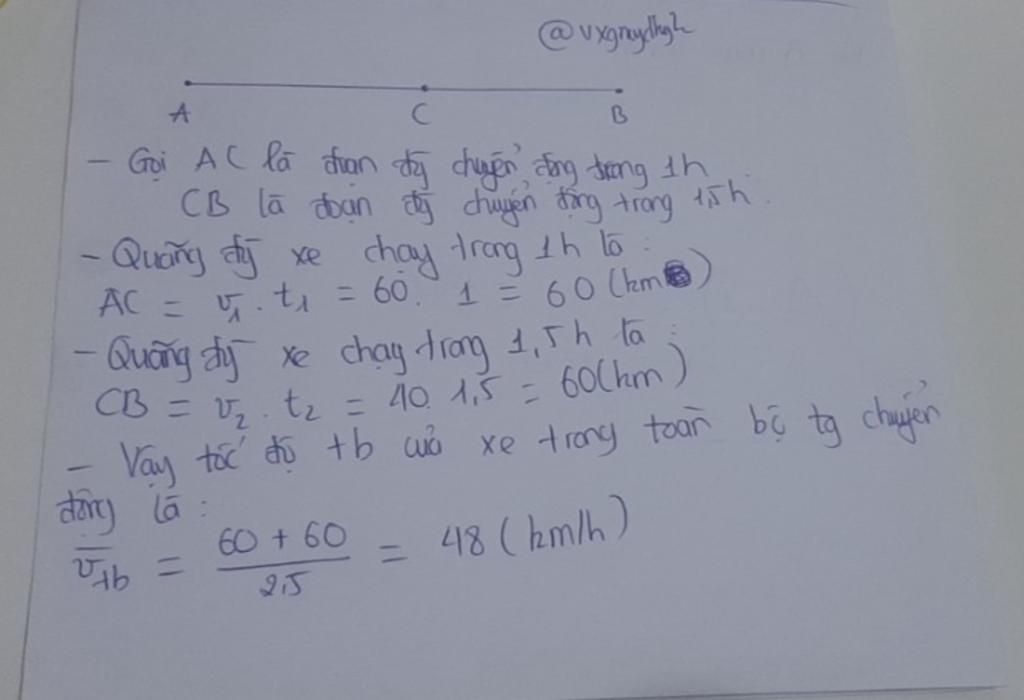 km/h, trong 1,5 giờ sau, tốc độ trung bình của xe là 40 km/h. Tính tốc độ trung bình của xe trong