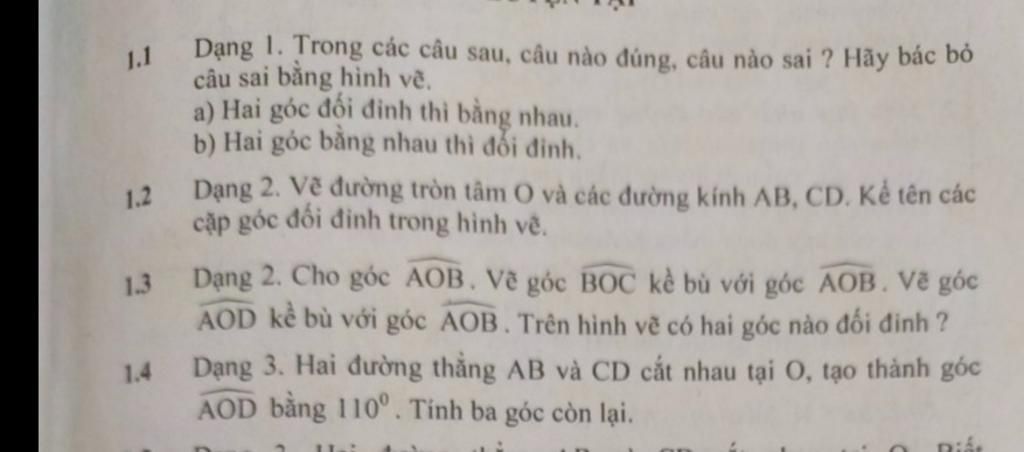 a) Hai góc đối đỉnh thì bằng nhau.