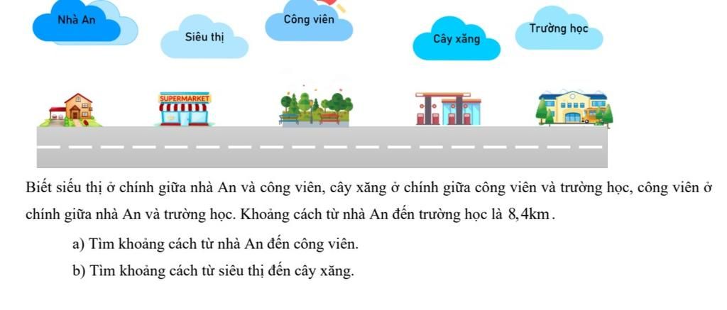 từ công viên đến trường học là 4,2 km thì từ công viên đến cây xăng hết số km là: