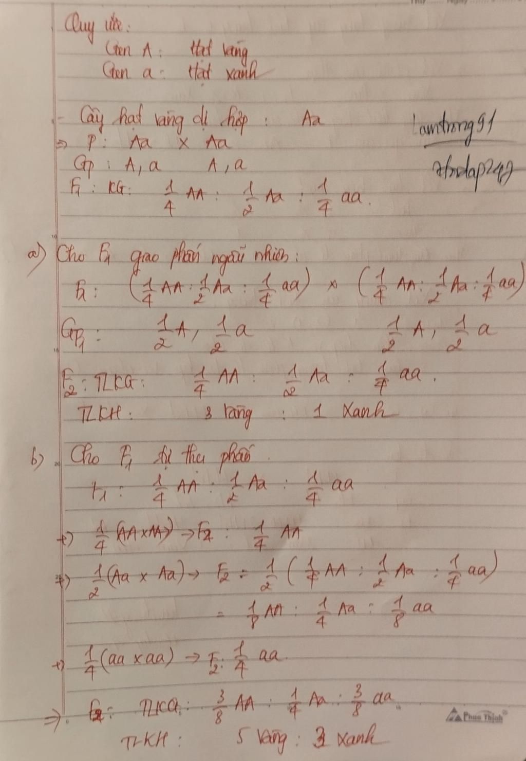 $A:$ hạt vàng $>$ $a:$ hạt xanh