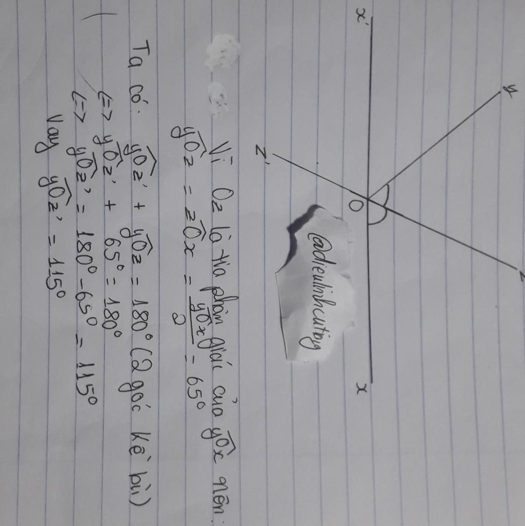 `=>` $\widehat{xOz}$ `=` $\widehat{z'Ox'}$ `= 65^o`