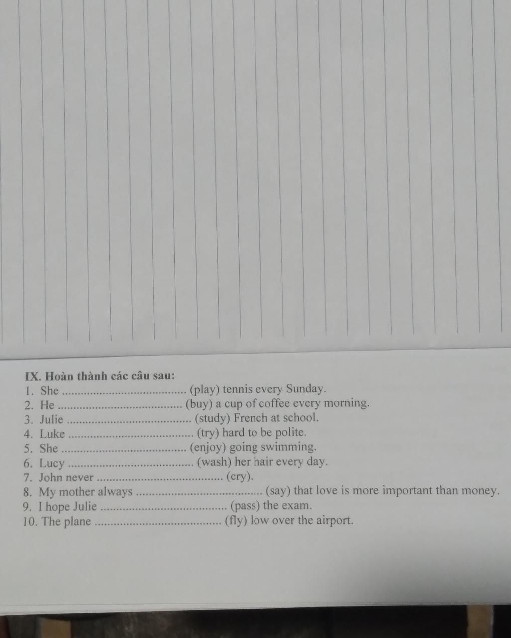 6. washes vì có từ chủ ngữ Lucy và everyday