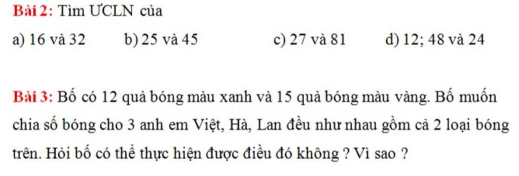 => ƯCLN( 12;15) = 3