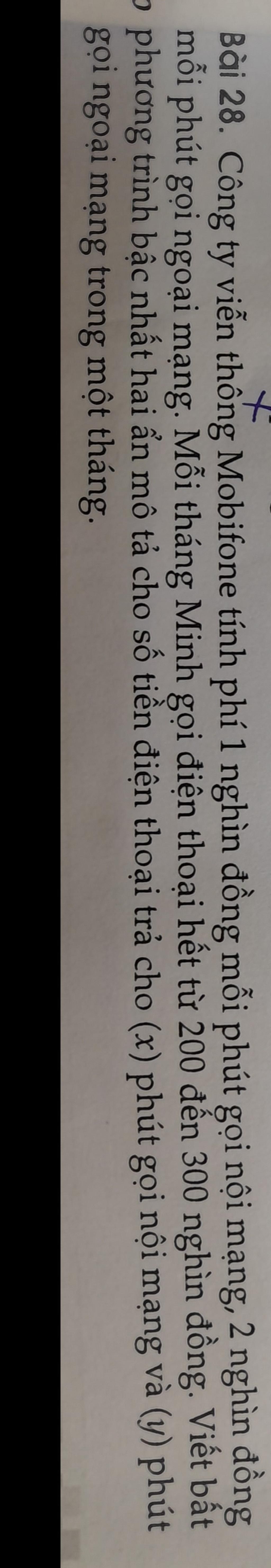 Do Minh gọi điện mỗi tháng chỉ mất từ `200 -> 300` nghìn đồng nên ta có BPT: