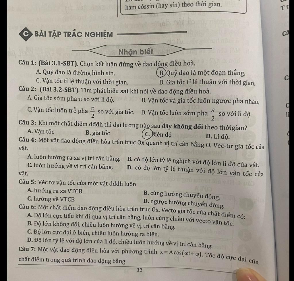 Ta có vận tốc ` v = \omega . A . cos( \omega . t + \varphi + {\pi}/2 ) ` ⇒ thay đổi theo thời gian
