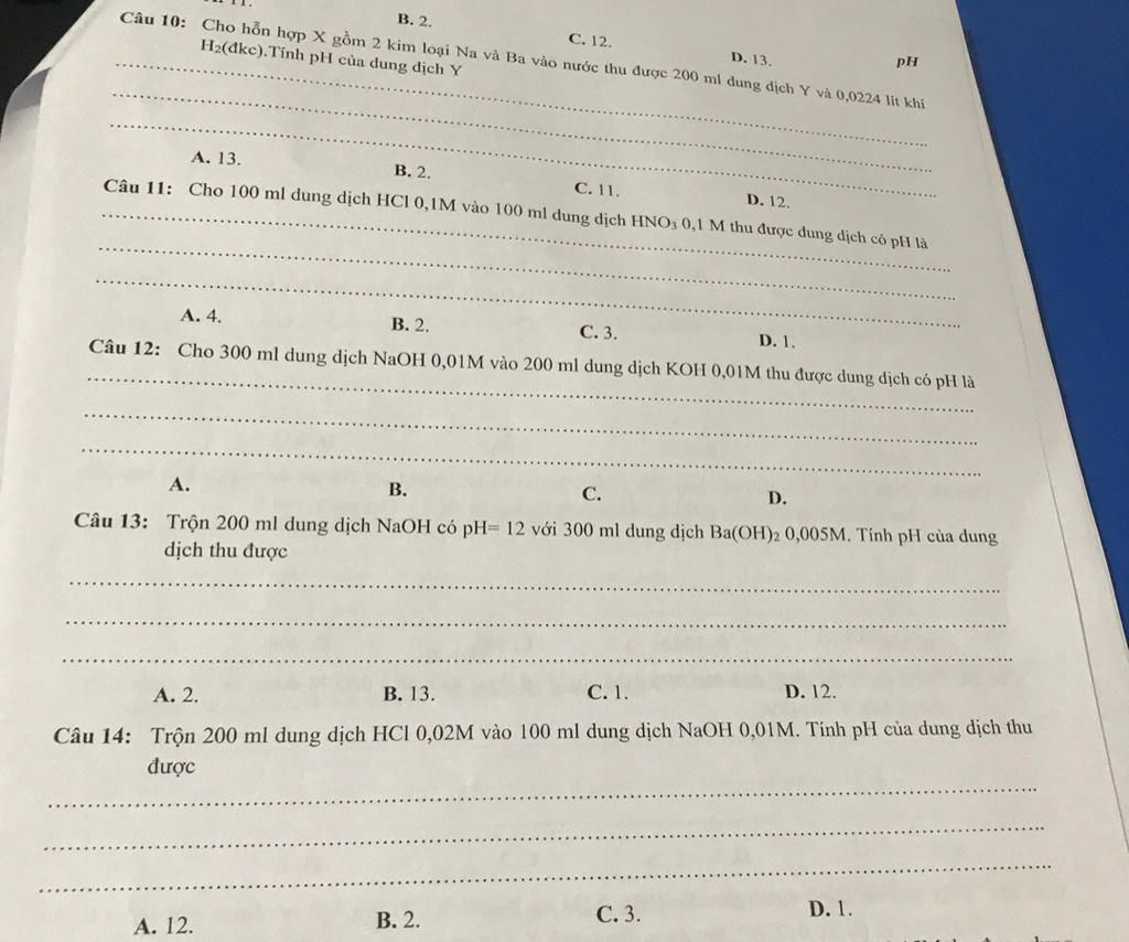 $n_{H^+}=n_{HCl}+n_{HNO_3}=0,01+0,01=0,02(mol)$