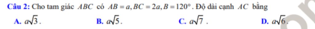 `= a^2 + 4a^2 + 2a . 2acos 120^@`