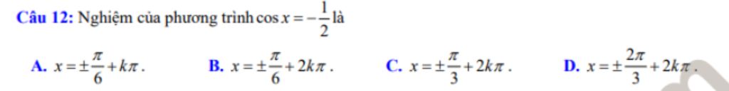 `<=>` `x=+-arccos(-1/2)+k2pi` `(k in ZZ)`