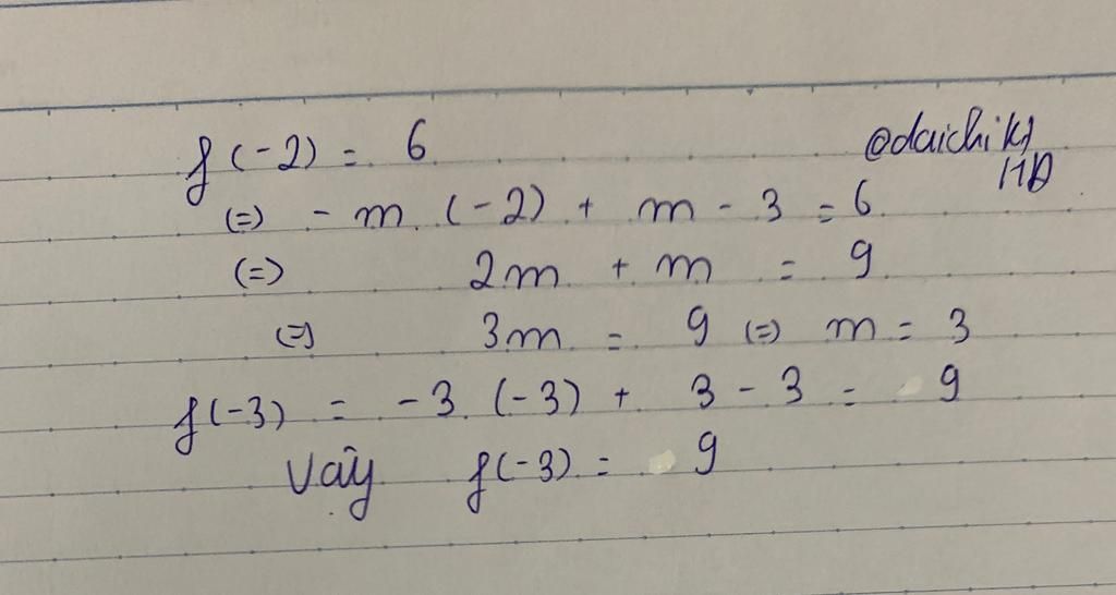 Khi đó : `f(-3)=-3.(-3)+3-3=9+0=9`