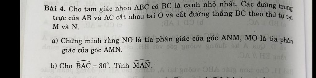 a) Chứng minh rằng NO là tia phân giác của góc ANM, MO là tia phân