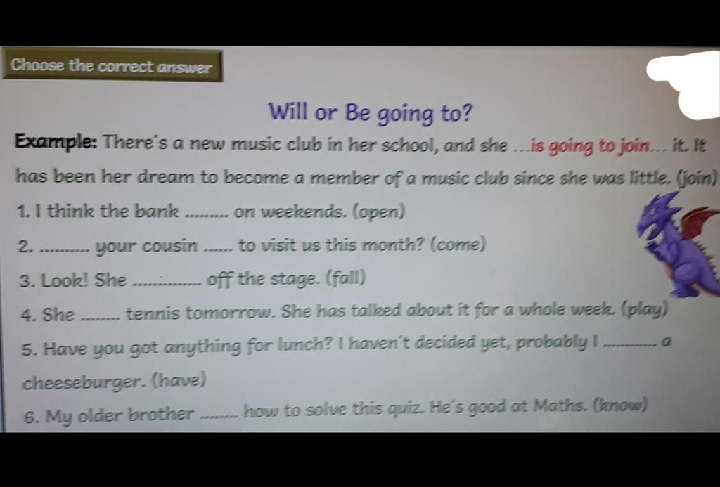 `=>` Thì tương lai gần : S + is/am/are + going to + V + O ...