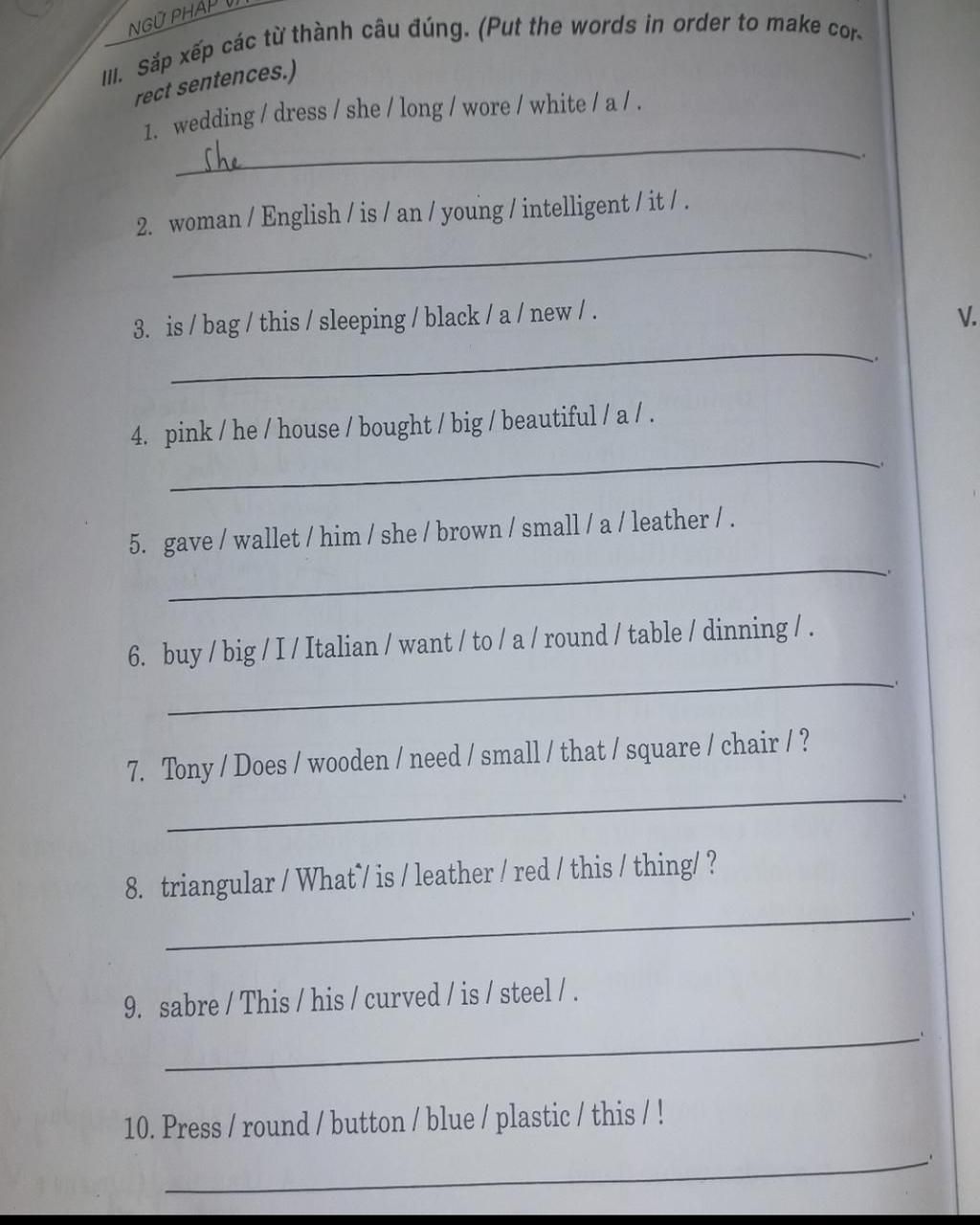 Tạm dịch : Cô ấy đưa cho anh ấy một chiếc ví da nhỏ màu nâu