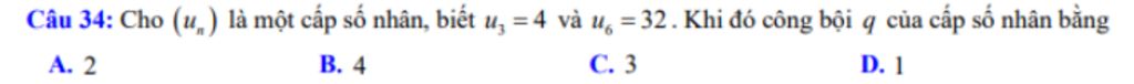 Ta có: `u_3=u_1*q^2=4` và `u_6=u_1*q^5=32`
