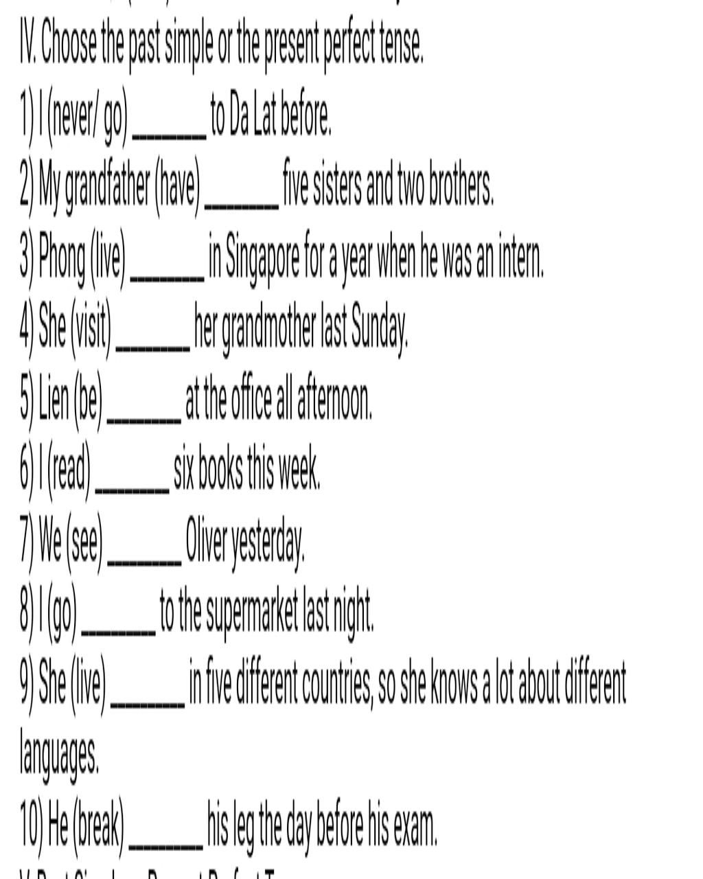 `-` before : DHNB của thì HTHT