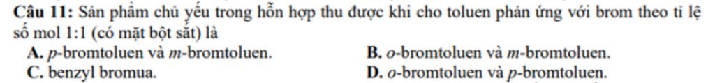 `+`Toluen có sẵn nhóm ankyl nên sản phẩm thế ưu tiên vị trí ortho và para