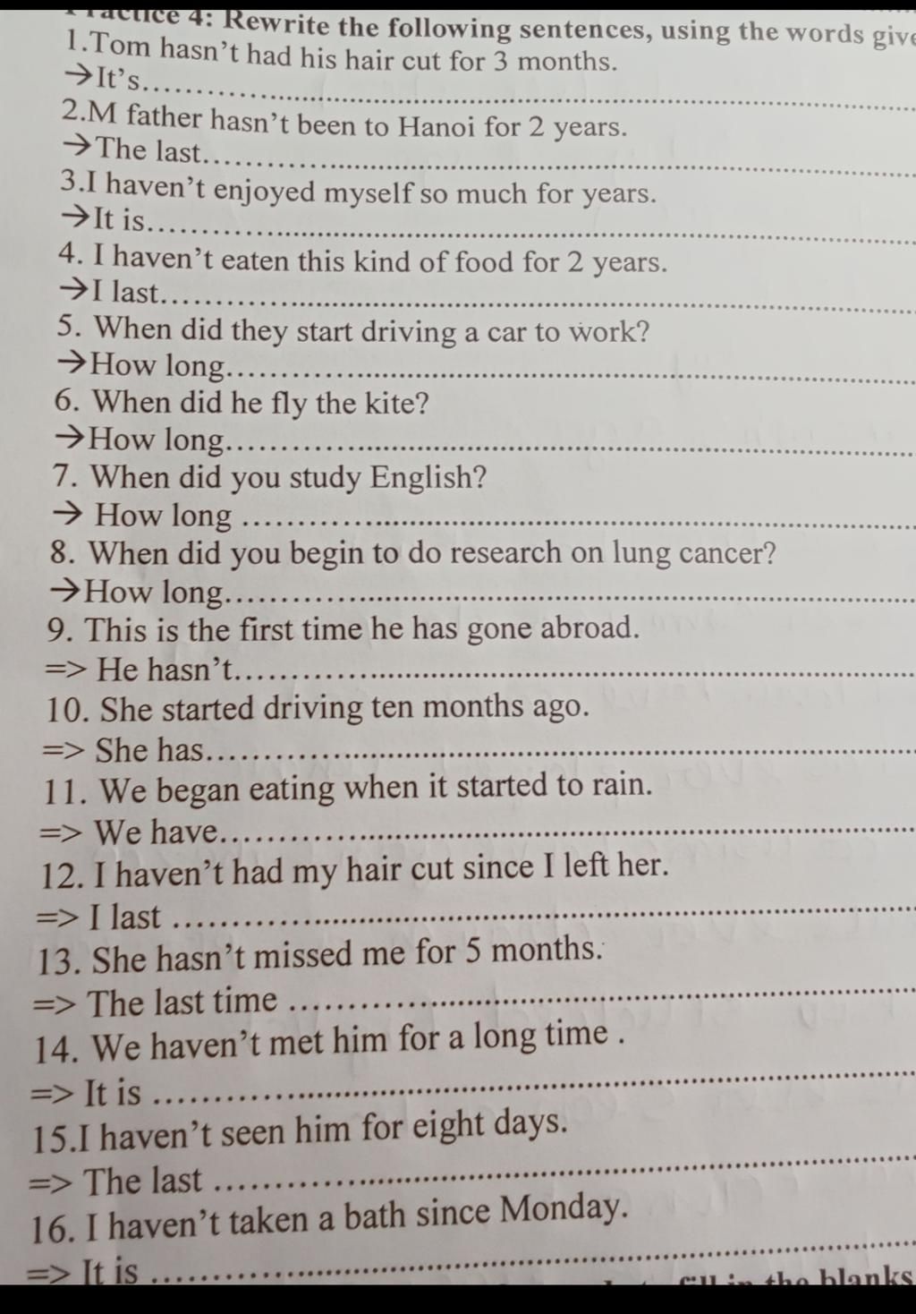 `1,` It's 3 months since Tom last had his hair cut.