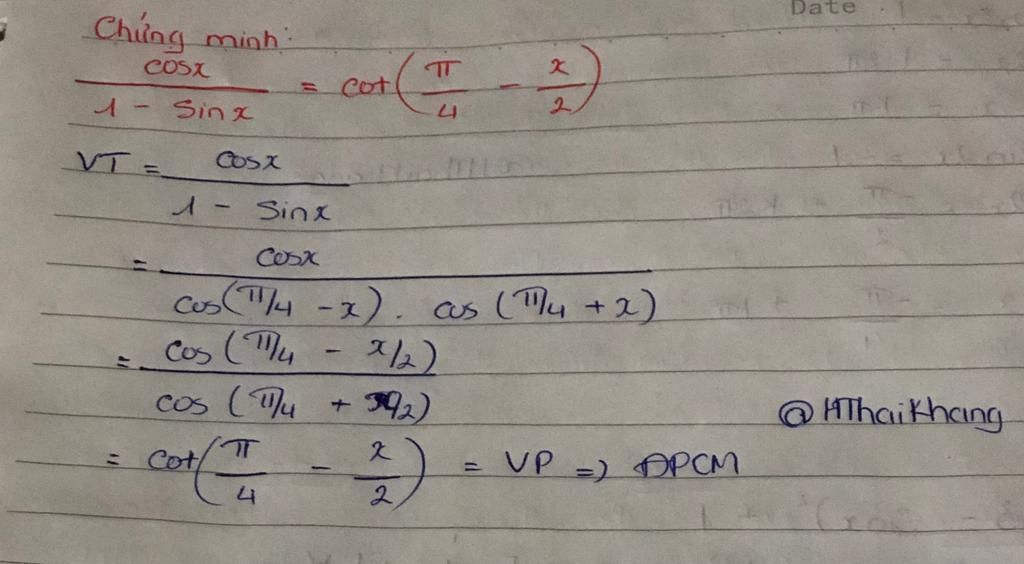 = cos(2 . x/2)/(1 - sin(2.x/2))
