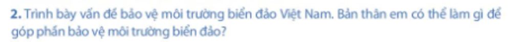 - Vấn đề bảo vệ môi trường biển đảo Việt Nam là: