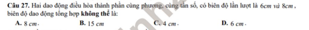 Biên độ dao động tổng hợp có thể là `:`