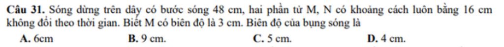 Theo đề `,` hai phần tử `M` và `N` nằm cùng một bó sóng và đối xứng qua bụng nên `d=8cm`