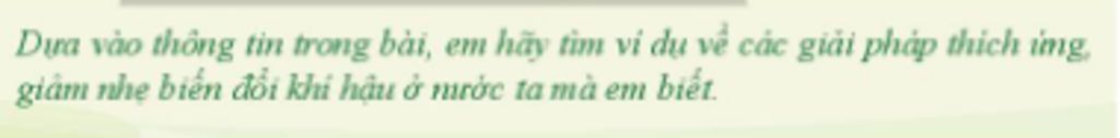 Ví dụ về các giải pháp thích ứng, giảm nhẹ biến đổi khí hậu ở nước ta mà em biết là: