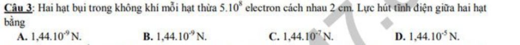 Lực hút tĩnh điện giữa `2` hạt là: