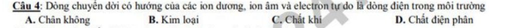 `-` Chất khí là dòng chuyển dời có hướng của các ion dương, ion âm và electron tự do là dòng điện trong môi trường