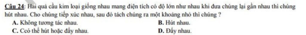 Điện tích như nhau và hút nhau nên hai điện tích điểm trái dấu: