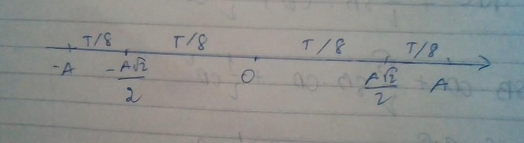 Dựa vào bảng phân bố thời gian thì từ O đến vị trí |A√2/2| và từ |A√2/2| đến biên thì đều mất T/8 s.