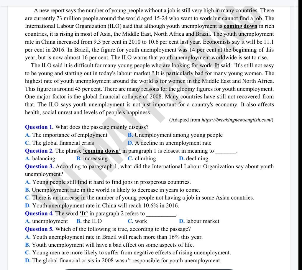 International Labour Organization (ILO) said that although youth unemployment i ...