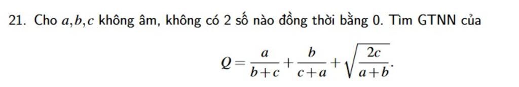 `Q+2= (a/{b+c} +1) + (b/{a+c} + 1) + {4c}/{2.\sqrt{2c.(a+b)}}`