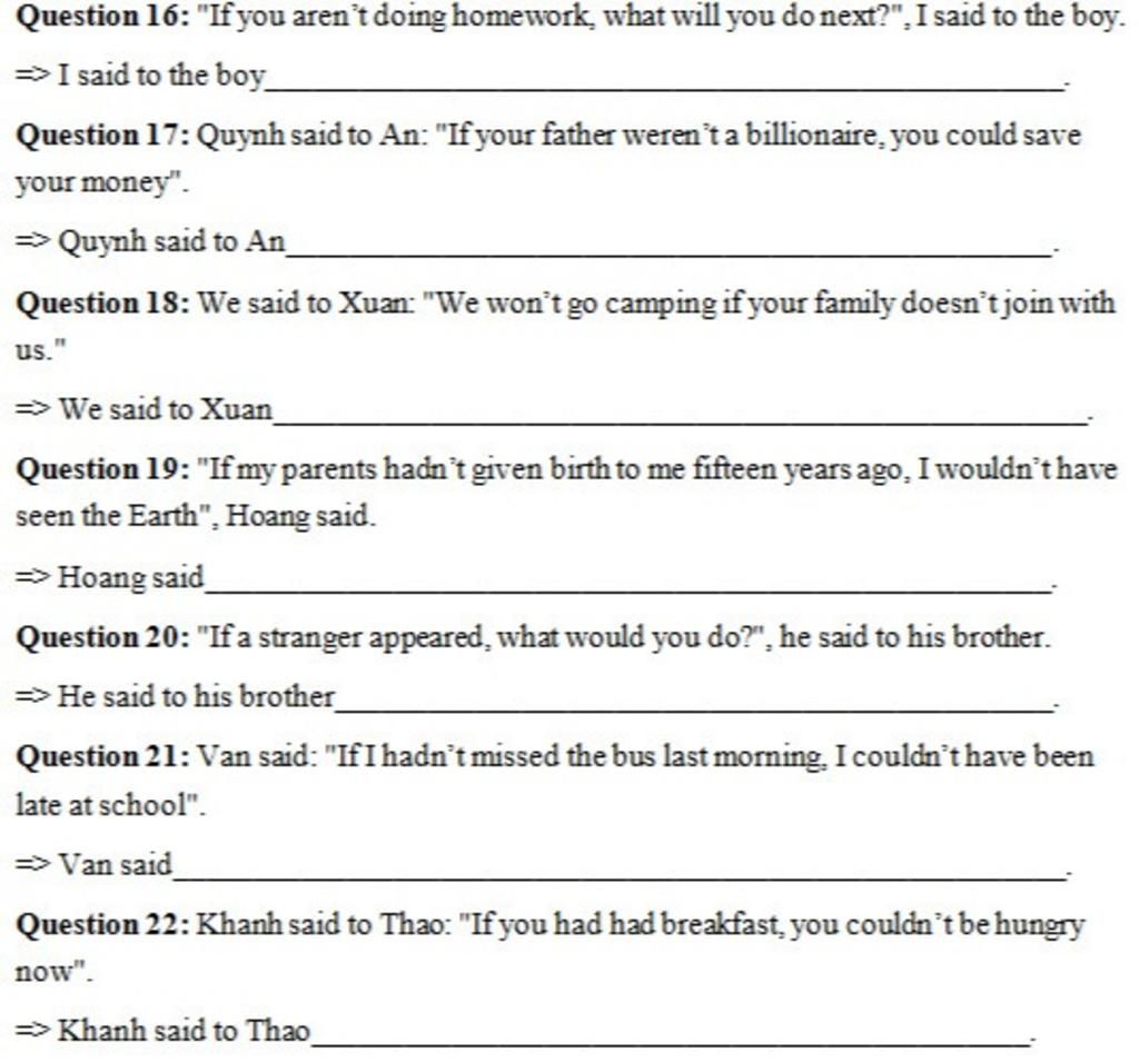 `16.` I said to the boy that If he weren't doing homework, what he would do next.
