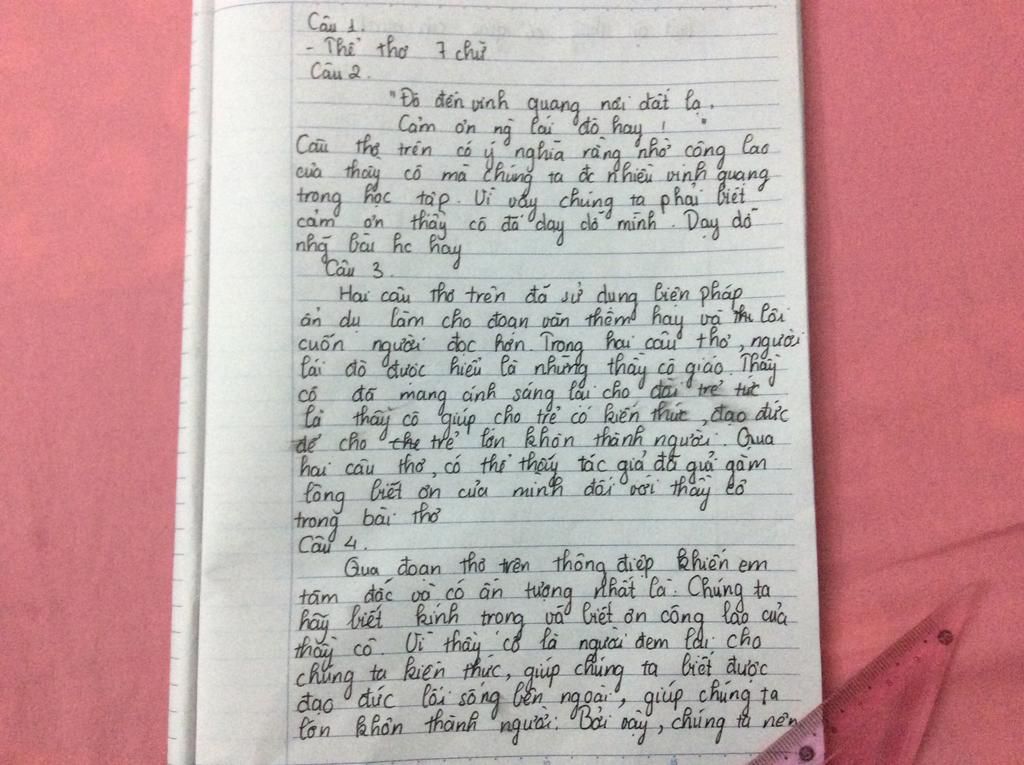 `+` Là `1` người học trò, người đã gắn bó với thầy cô trong suốt những năm ngồi trên ghế nhà trường. Luôn nhận được những lời dạy, chỉ bảo tận tình từ thầy cô. Vì vậy mỗi người cần biết ơn, tri ân thầy cô. Là em, em sẽ luôn nhớ về những điều mà thầy cô dạy, từ đó luôn nỗ lực cố gắng để đạt được ước mơ