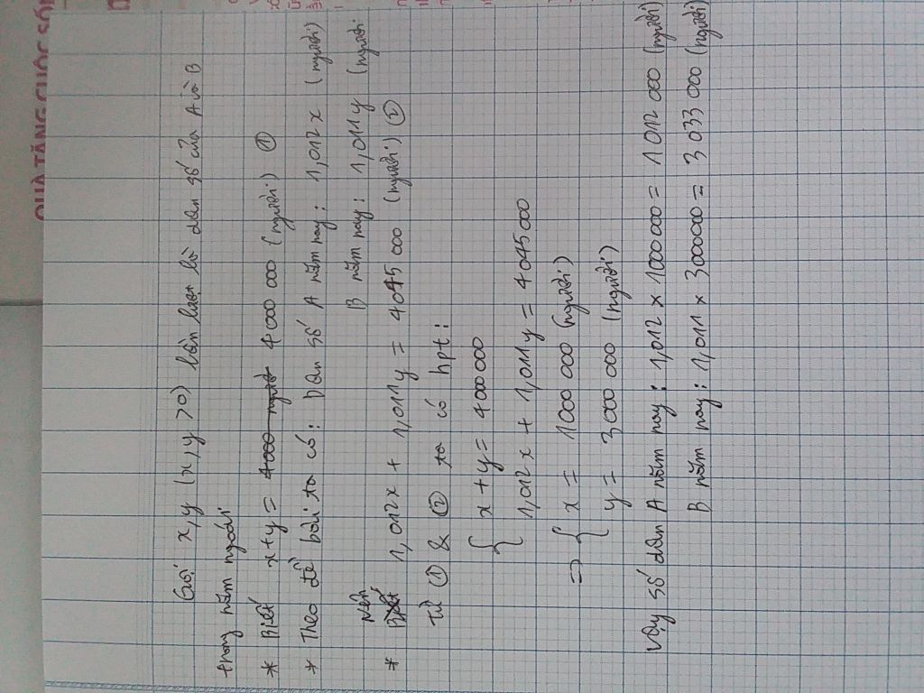 Vậy số dân tỉnh B năm nay là: 3000000 + ( 3000000.0,011)=3033000 người